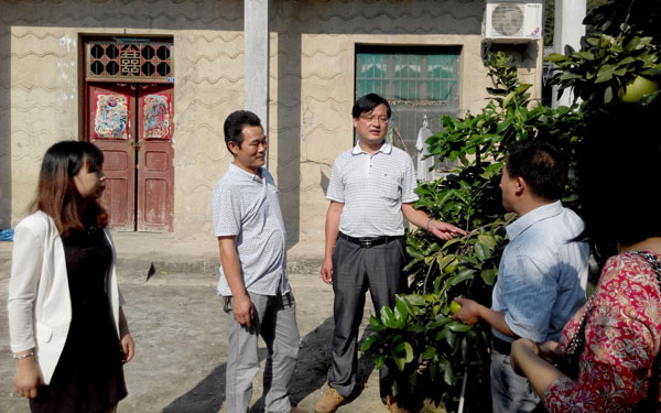 座谈会后,陈全胜一行在李前进等的陪同下,深入到田间地头进行实地调研,现场参观了该村苗木基地,现场指导村民进行柑橘、柚子等果树的整形修剪。