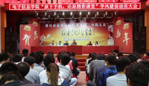 为了响应学校整顿教风学风的号召,结合“三严三实”专题教育活动,10月8日晚,电子信息学院在大学生活动中心召开全体在校学生大会,大会主题为“放下手机,还原精彩课堂”学风建设专项活动动员。学院全体学管人员参加了本次大会,大会由团总支副书记魏鹏主持。