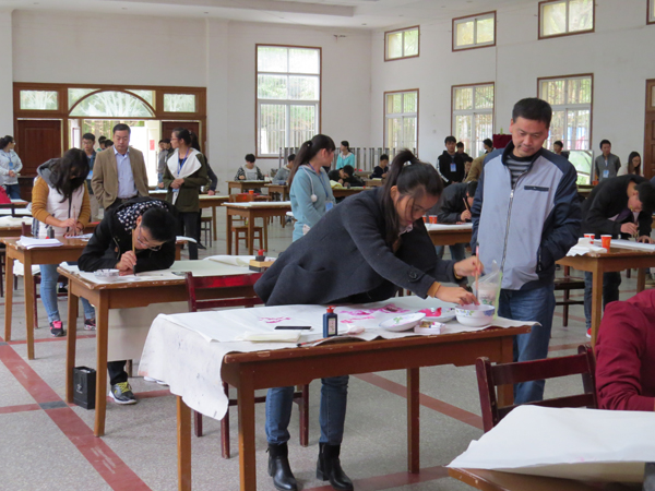 为了充分挖掘学生的书画才能,丰富学生的课余生活,给他们一个展示自我才艺的舞台,营造浓厚的校园文化氛围, 11月7日上午,由共青团Beat365中文官方网站委员会主办,交通学院团总支承办的以“绘美丽蓝图,展青春风彩”为主题的第十二届校园文化艺术节现场书画大赛在大学生活动中心隆重举行。校团委书记杨勇、科研处副处长王银林、校团委汲艳蕊老师、各教学学院团总支副书记、部分辅导员代表以及300余名参赛选手参加了本次大赛开幕式。本次大赛评委由王银林、宋秀英、冯兴国、李辉等老师担任。