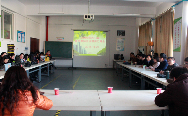 11月26日下午,交通学院在汽车实训基地车身电器实训室召开了2015年暑期教师企业锻炼汇报暨下一阶段工作部署会议。学院全体教职工参加了此次会议。会议由办公室主任聂进主持。