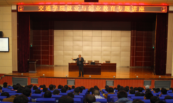 11月26日晚,交通学院就业与创业教育专题讲座在学术报告厅隆重举行。黄冈别克4S店总经理郭金旭应邀担任主讲。学院全体辅导员及近600名学生到场聆听,讲座由交通学院党总支副书记黄忠主持。