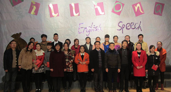 英语演讲比赛是商学院商务英语专业的传统二课活动。为了进一步提高学生学习英语的热情,丰富校园生活,由商学院商务英语专业承办的第十五届英语演讲比赛于2015年12月1日晚6:30在大学生活动中心隆重举行。教务处副处长叶建亭、商学院副院长罗建文、商学院党总支副书记焦爱新、教务处童秋艳老师及外籍教师Peter和Judith出席了该比赛,教务处副处长叶建亭代表领导讲话,商务英语专业全体教师和公共课部库利江老师担任比赛评委,商学院商务英语、酒店管理等专业600余名学生观摩了比赛。