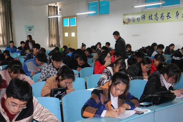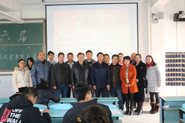 12月3日中午12点30分,由院教务处批准立项的学生校内技能竞赛活动项目——Beat365中文官方网站第六届规范汉字实用硬笔书写大赛,在育贤阁203、204教室正式拉开帷幕,来自各教学学院的300余名学生选手参加了比赛。本次比赛由公共课部大学语文教学团队主办,校松风阁书画社协办,公共课部主任张克新、副主任江楚义、办公室主任彭红兵亲临现场指导,张克新主任致开幕词并宣布比赛开始。