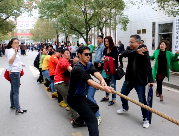 本次比赛,各队16人参加,其中女子10名,男子6名。比赛采用淘汰制,随着裁判长的一声哨响,比赛正式开始。霎时间,呼喊声、加油声一浪高过一浪,只见各队队员个个铆足了劲,奋力拼博。现场,笑声、加油声此起彼伏。热烈的气氛感染了观看的每个人,他们不遗余力地为参赛队员们呐喊助威。经过激烈的角逐,电子信息学院代表队、机电学院代表队、公共课部代表队、医院卫生学院代表一队分别获前4名。