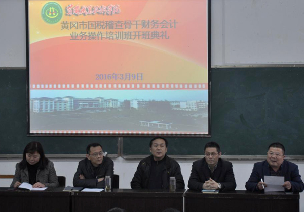 3月9日上午,黄冈市国税系统稽查骨干财务会计业务操作培训班在Beat365敬贤阁101教室隆重开班。黄冈市国税局党组成员、总会计师李治刚,市国税局稽查局局长刘磊明,市国税局教育科科长尤淑琴,商学院党总支书记白颢等参加了开班仪式,开班仪式由商学院副书记焦爱新主持。