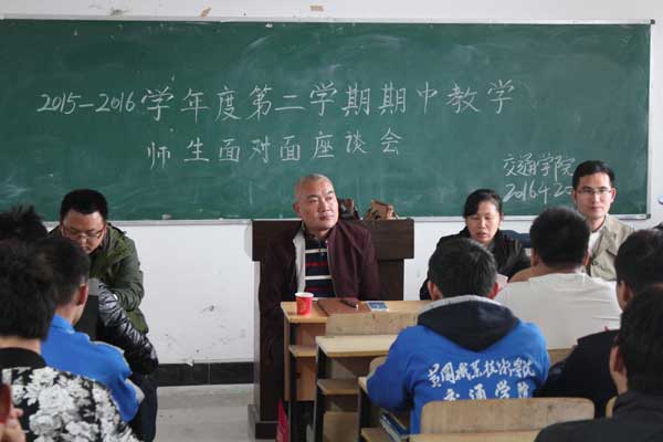 为了了解学生学习与教师教学中存在的不足,从而更好地调整教学安排,促进专业建设,4月20日下午,交通学院在育贤阁5楼506至508教室召开了4场“师生面对面”座谈会。参加此次会议的人员有交通学院党总支书记钟彬杉、教务处副处长范先超、相关课程教师代表、交通学院全体教职工以及2014、2015级学生代表。