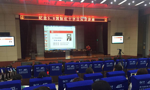 授旗仪式结束后,湖北省红十字会陈凡部长给到会的400多名学校应急救护志愿者和红十字志愿服务队队员讲了一堂生动、精彩的以“红十字”精神为主题的报告。