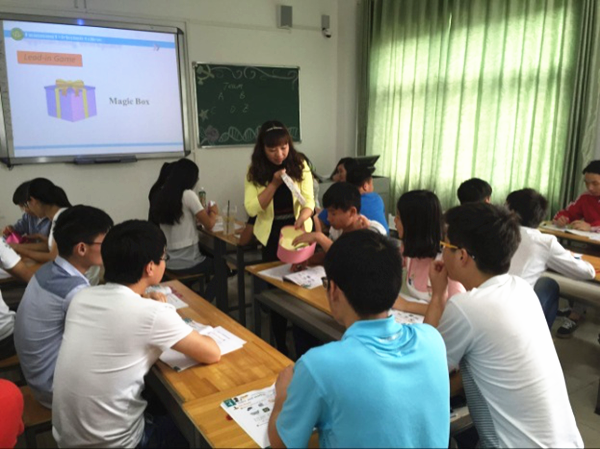 余老师课堂处处充满了欢声笑语,学生们个个争先恐后参与课堂活动,活动结束后,通过累计小组活动得分,颁发奖品。视导员对此次视导课活动给予了充分肯定。最后,胡亚学教授对此次教学活动总结出五个到位,即“快乐理念到位、职业语言到位、教学手段到位、学生核心成员作用发挥到位、课堂互动到位”。