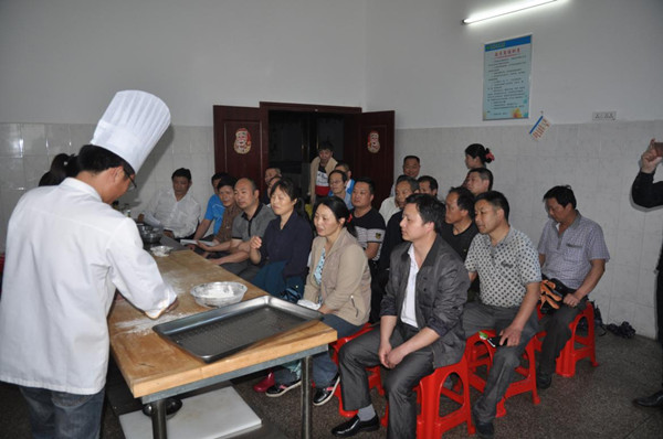 5月20日下午14点,商学院烹饪工艺与营养专业在南苑烹饪实训基地为后勤保障处餐饮部厨师开展了面点制作技术培训活动,后勤保障处餐饮部主任吴全宏、餐饮部全体厨师、商学院部分烹饪专业学生参加了此次活动,培训活动由商学院烹饪专业教师杨清老师主讲。