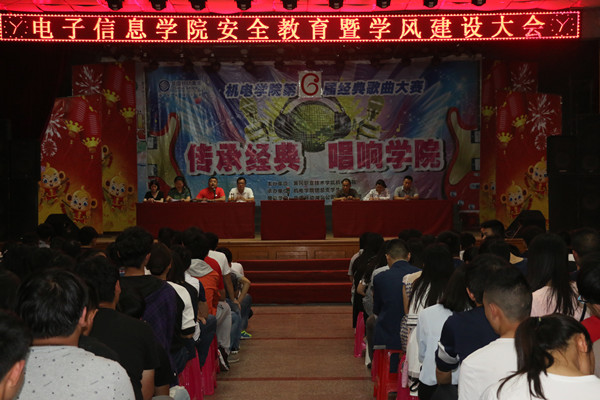 5月24日晚,电子信息学院在大学生活动中心召开了安全教育暨学风建设大会。学院党总支副书记程朗、副院长孙俊、团总支书记魏鹏、女生辅导员吴颉和全体专、兼职辅导员到会,电子信息学院2014和2015级全体在校学生参会。会议由魏鹏主持。