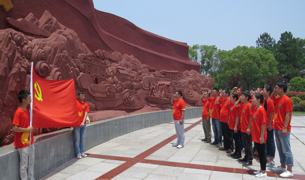 参观结束后,在唐永明的带领下,学工党支部全体党员在陈潭秋故居的浮雕前举行了庄严的“重温入党誓词”仪式。