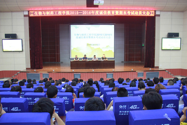 6月16日下午,生物与制药工程学院在学术报告厅召开诚信教育暨期末考试动员大会。学院党总支副书记程喜荣、团总支副书记朱元锋、专职辅导员姚芸、李静思及学院全体在校生参加了本次大会。