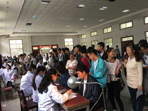 由于本次新生体检人数多、时间紧、任务重。为了保证体检质量和体检工作顺利开展,校学工处、团委和附属医院高度重视,就体检项目、体检场所、日程安排等事项进行了多次对接,并制订了《黄冈职院2016年新生入学体检方案》,合理安排体检流程。在保证附属医院正常运转的前提下,医院抽调了精干技术力量近30人,为本次新生体检工作的顺利进行提供了保障。本次体检吸纳了近50名相关专业志愿者参与体检工作,为学生提供了实习锻炼机会。