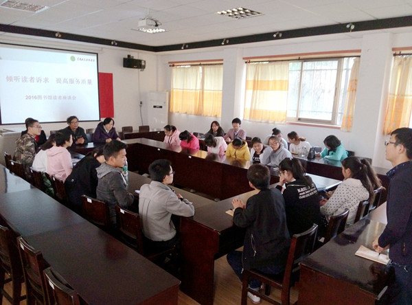 11月3日下午,图书馆在文科馆二楼视听室召开了以《倾听读者诉求 提高服务质量》为主题的2016年读者座谈会。图书馆副馆长刘开国、各部室主任、大学生读书协会会员和来自各学院共30余名学生代表参加了座谈,会议由流通部主任魏蔚主持。