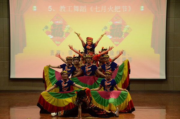 整台晚会精彩纷呈。健美操表演《欢乐颂》《老檀酸菜》展现了机电学子青春、阳光、活力;师生们的歌曲串烧《南方姑娘》《那就这样吧》《成都》诠释了积极的生活意义和良好的师生友谊;宝贝们的新年祝福《吉祥如意》增添了浓浓的年味、道出了美好的祝愿;师生们的激扬舞蹈《七月火把节》跳出了火热的激情和向上的斗志;教工相声表演《传统文化与职业文化》诙谐生动、贴近实际、贴近专业,赢得了阵阵掌声;武术表演《刚柔并济》、街舞表演《舞动激情》让观众们心潮澎湃、热血沸腾;学院领导老师们表演的诗朗诵《我骄傲,我是一名高校教师》更是掀起了晚会的高潮,台下掌声不断。教职工的表演诠释了教师的无私与奉献、执着与进取;学生们的表演展现了青年学子的激情与活力、青春与美丽。