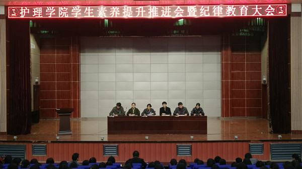 会上,夏瑾燕宣读《护理学院学生职业素养建设推进实施方案》,为护理学院学生职业素养提升,培养职业化优秀人才提供了明确思路。张朋生宣读学生违纪处理文件,给在座学生敲响警钟;违纪学生宣读《Beat365中文官方网站安全承诺书》并汇报思想。