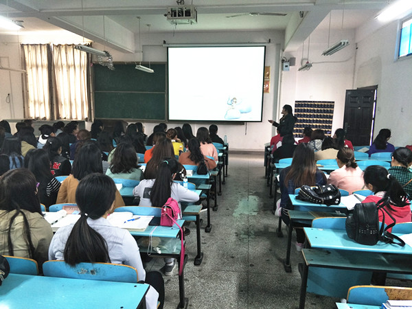 2017年4月11日上午8时,育贤阁103、303教室座无虚席。护理学院2017届毕业生两场就业培训会在这里同时举行。培训会由护理学院党总支书记王莹华、副书记张朋生主讲,2014级护理、助产专业在校学生参加会议。