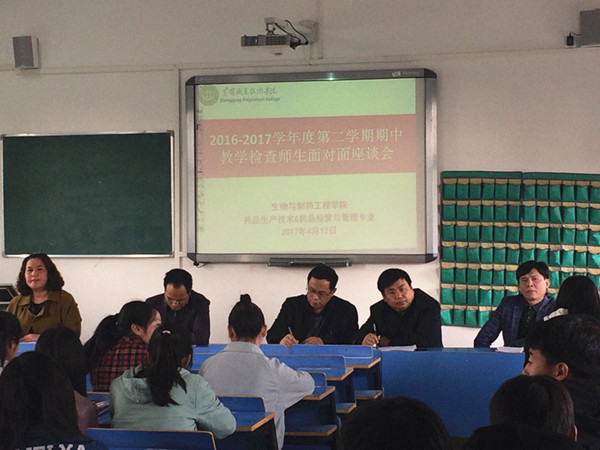 2017年4月12日,生物与制药工程学院分四个团队,分别在思贤阁四个教室召开了“师生面对面”座谈会。副校长万俊华参加了制药药品团队的座谈会,生物学院领导班子成员、学校各职能部门代表、公共课部教师代表、生物学院全体专业教师和辅导员、各班学生代表分专业参加了座谈会。