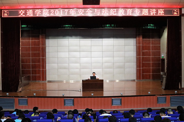 为将安全教育抓细抓实,让底线意识入脑入心,6月2日晚,交通学院在学术报告厅举行了安全与法纪教育专题讲座。交通学院党总支副书记黄忠担任主讲,学院全体辅导员及2015级600余名学生到场聆听了讲座。