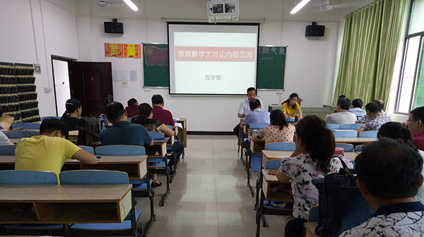 6月12日下午,医学部在齐贤阁201教室召开教育教学大讨论内部交流会暨期末考试动员大会。医学部直属党支部书记兼常务副主任徐火军、教学管理人员及全体教师参加了本次动员会,大会由医学部副主任江玲娜主持。