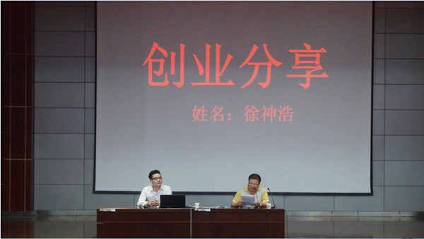 徐神浩通过讲述自己成功创业的生动故事,不仅与大家分享了自己的创业经历和创业感悟,还以学长的身份就学弟学妹们所关心的“创业需要具备什么”、“如何选择项目”、“如何组建创业团队与选择合作伴”、“如何实践创业想法”等关键性的问题做了详细解读。讲述过程中,他还特别诚恳地叮嘱,要创业就必须十分注重知识技能的储备和人脉关系的积累,要广泛学习社会和实践知识,不断充实和完善自己,要以坚定不移的信念和百折不挠毅力向着自己的既定目标进取。现场上响起了一阵阵热烈的掌声。