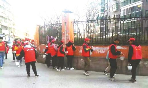 活动开始前,八一社区第一书记黄胜带领众人宣誓,一股排山倒海的“双创”热情被点燃。大伙迅速分工,第一梯队负责发放宣传资料,向路人及商户宣传创文创卫精神;第二梯队负责清除“牛皮癣”,走进每一栋居民楼,先铲除小广告,再刷上白涂料;第三梯队负责清除卫生死角,小区内外、人行道两侧、甚至停车场小车旁的纸屑塑料袋也一律不放过。