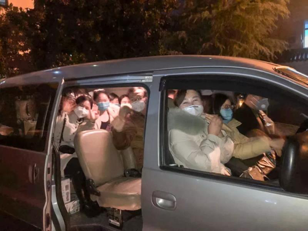 ↑图为:湖北省罗田县赴黄冈医疗队医护人员准备出发