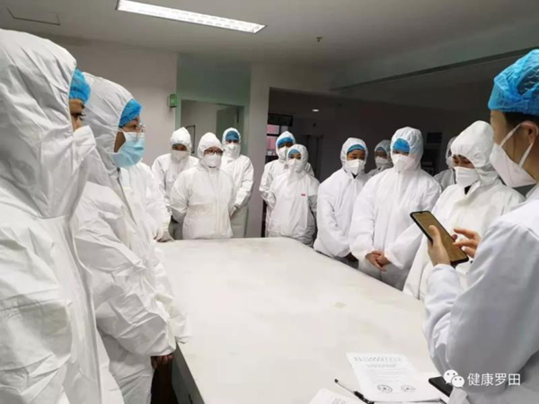 ↑图为:湖北省罗田县赴黄冈医疗队医护人员正在工作