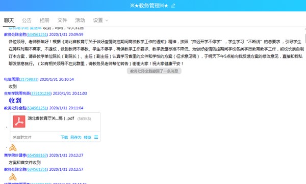 为做好在线教学工作,在校领导的协调下,教务处、信息技术中心、质量管理处、学工处、人事处及各教学单位各司其职,协同合作,共同为在线教学工作的顺利实施保驾护航。为了测试“智慧黄职”云教学平台的运行能力,在2月13日学校在线教学正式开启之前,教务处2月12日在平台中开设了新春第一课《疫情防控知识》,通过全校过万用户同时登录学习,平台和APP均出现过载停机的情况,为解决平台在应用期间出现的各项问题,2月14日,熊发涯组织正方软件股份有限公司董事长叶青松、得实信息科技(深圳)有限公司总经理郑林伟、武汉意丰科技有限公司总经理刘泽林及学校教务处、信息技术中心负责人等召开视频会议,共商解决问题的具体措施。会后,各大公司增派技术力量,全程监控和解决线上教学的问题,2月15号全线开动,云教学平台得到了新一轮的优化。质量管理处牵头制定《Beat365中文官方网站疫情防控期间教学督导工作方案》,科学开展教学督导,对在线课程的教学情况进行线上抽查听课,确保学校的教学质量不降低。