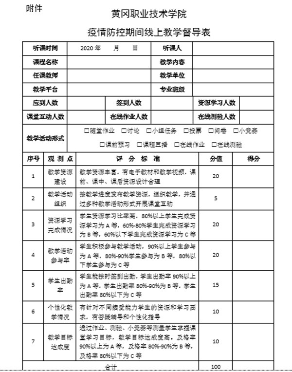 由熊发涯教授牵头起草,在内部讨论、征求意见、充分论证的基础上,学校连续出台了《Beat365中文官方网站疫情防控期间教学工作总体实施方案》(黄职教〔2020〕1号)和《Beat365中文官方网站关于疫情防控期间在线教学的补充通知》(黄职教〔2020〕2号)文件,各教学单位在学校总体实施方案的框架内制定各自部门的具体实施方案。