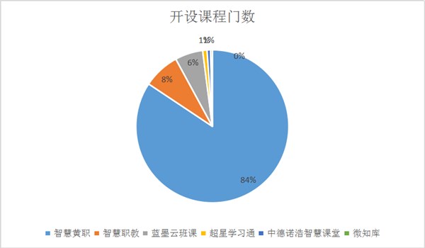 本学期,按照教学工作计划,正常开设课程458门,其中全部或主要使用“智慧黄职”云教学平台的课程为373门,使用“智慧职教”课程为42门,使用“蓝墨云”平台的课程为32门,使用“超星学习通”平台课程为5门,使用“微知库”平台课程为2门,使用“中德诺浩智慧课堂”平台课程为4门。