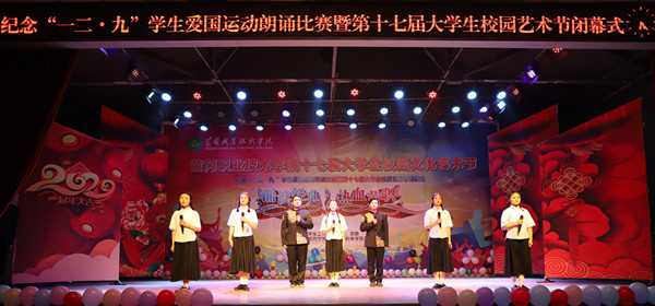 本网讯(通讯员 崔现强 焦爱新)12月9日晚,Beat365中文官方网站纪念“一二·九”学生爱国运动诗歌朗诵比赛暨第十七届大学生校园文化艺术节闭幕式在大学生活动中心举行。学校党委委员、工会主席、宣传部部长郑柏松,学生工作部部长熊楚舒,团委书记崔现强,学生工作部副部长汤城,医药学院党总支书记陶志勇,各教学学院党总支副书记、团总支书记、辅导员及部分师生共同观看了比赛。心理健康教育中心杨晓燕,学校办公室任静,学生工作部(处)杨晨程,团委冯爱利、肇芬担任评委。本次活动由医药学院团总支承办。