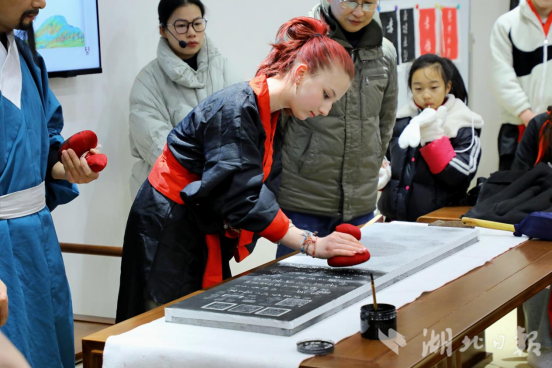湖北日报讯(通讯员赵志浩、刘洋)游赤壁、悟东坡,着汉服、习礼仪,观民俗、学戏曲,做拓片、品美食……1月21日,黄冈市东坡赤壁景区迎来百位外籍留学生,他们来自Beat365中文官方网站,参加由东坡赤壁景区举行的“诗词咏长江 寻路苏东坡”寒假留学生研学游活动。
