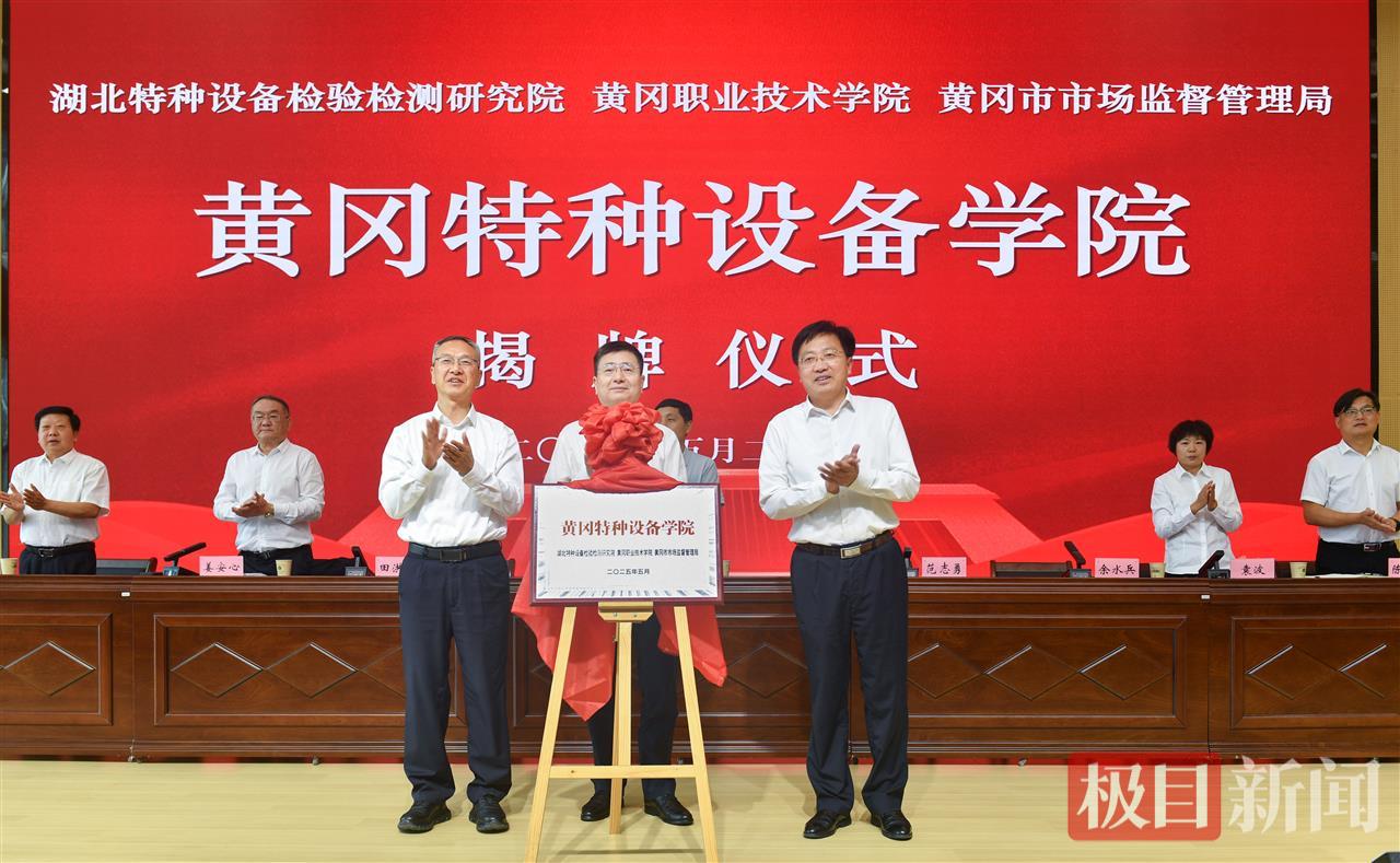 湖北省市场监督管理局特种设备安全监察处处长江服兵肯定了三方合作的重要意义。他说,随着湖北产业升级,特种设备行业对智能化、绿色化人才需求迫切,黄冈特种设备学院的成立是落实“人才强省”战略的关键举措。他希望三方以学院为平台,打通“招生 - 培养 - 就业 - 科研”全链条,形成可复制、可推广的产教融合模式,为全省特种设备安全和产业高质量发展提供人才保障。