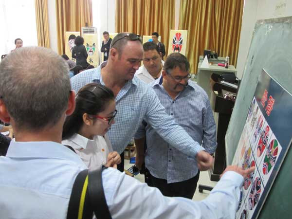 新西兰孔子学院大中小学校长代表团成员随后走进黄冈职院汽车实训基地、机电实训室、“淘宝”电商实训平台、建筑学院实训场地、国画馆、校史馆等地参观考察。在国画馆,新西兰客人和学生一起给中国传统京剧的“脸谱”涂色,与上课的师生们一起进行了互动。