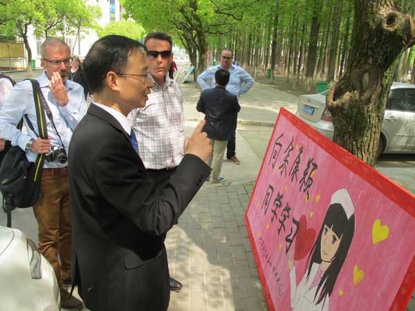 黄冈职院校长姜安心、副校长段院生和国际处黄爱良处长快步上前,热情与带队的华中科技大学国际学院负责人胡泓、高翔和来自新西兰坎特伯雷大学孔子学院等10位大、中小学校长一一握手,欢迎来自南半球的客人访问“国家首批骨干高职院校”的黄冈职院,继续参加“一带一路”孔子学院黄冈基地国情系列体验活动。