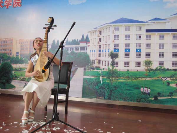 医学院口腔201501班学生郭艺萱表演琵琶独奏,中国民族乐器的“天籁之音”让新西兰客人如痴如醉