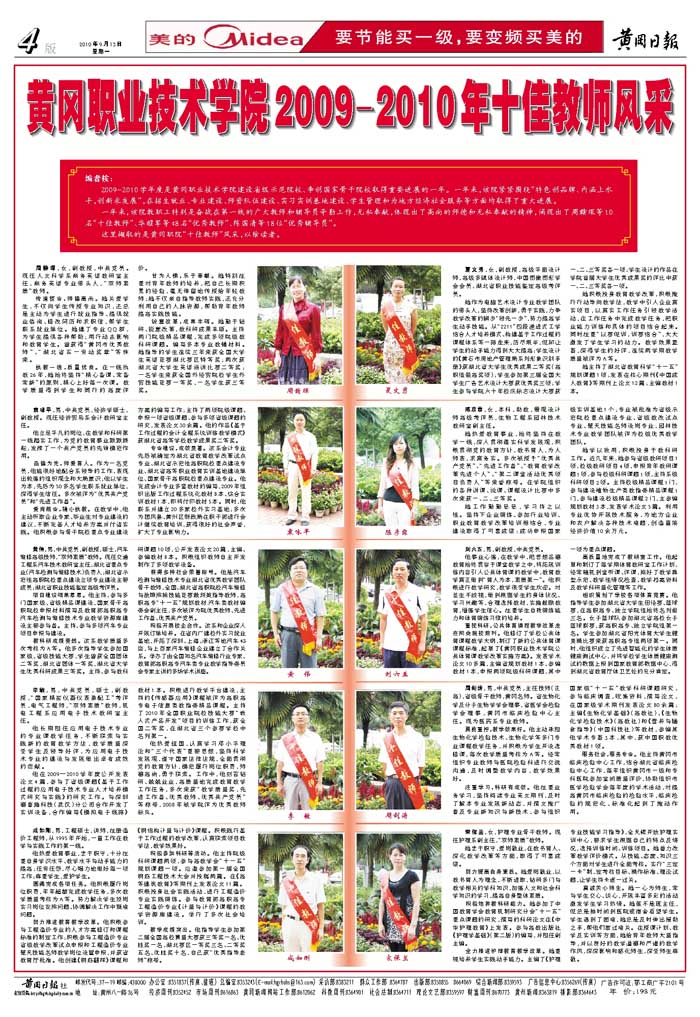 黄冈日报:Beat365中文官方网站2009-2010年十佳教师风采