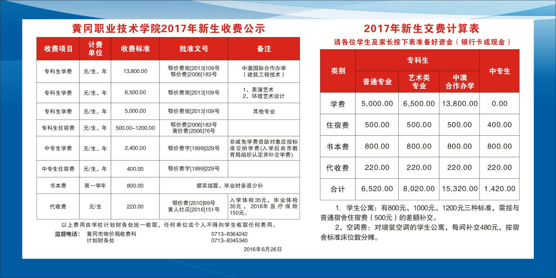 附件2-1:黄冈职业技术学院2017年分专业学费标准表(2017级)