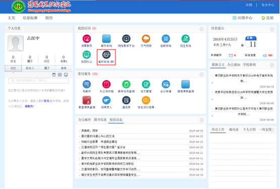 通过身份验证后,可打开如下图2所示的“个人主页”,点击导航栏中“离校系统(新)”,即可进入“离校 系统(新)”。