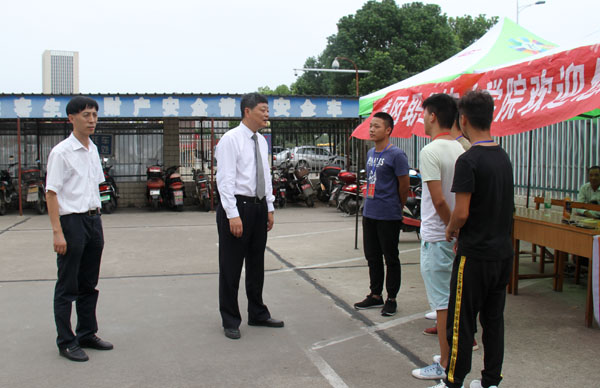 Beat3652017级新生迎新工作正在如火如荼的进行中,学校高度重视迎新工作,氛围热烈。2017年9月5日下午,校党委书记张新佳率队前往Beat365各个迎新接待站亲切慰问工作人员和学生志愿者。党委委员、工会主席、宣传部长郑柏松,校长助理刘明涛,学工处处长熊楚舒,宣传部副部长刘国峰陪同慰问。