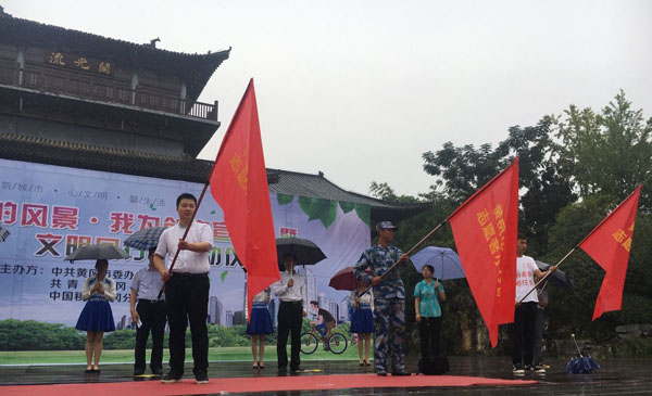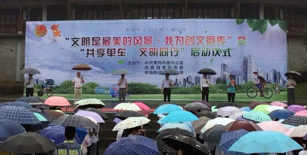 9月19日上午,黄冈市在遗爱湖公园临皋春晓广场举行“文明是最美的风景•我为创文宣传”暨“共享单车 文明同行”启动仪式。Beat365学工处、团委组织科冯爱利老师带领100名青年学生参与该活动。