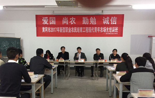 11月11日,2017年黄冈市新型职业农民培育工程现代青年农场主培训班开班典礼在Beat365启智楼301教室举行。出席开班典礼的有Beat365党委委员、工会主席郑柏松,生物与制药工程学院党总支书记陈国安、院长余亮彬、副书记程喜荣、副院长周桃英和部分老师,来自Beat36570名学员参加了开班典礼。开班典礼由陈国安主持。