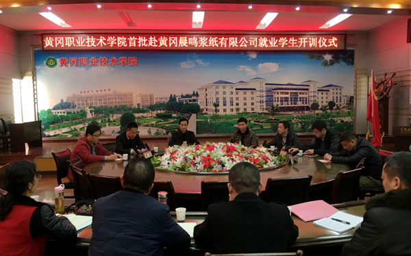 开训仪式前,袁畅召开了有关职能部门工作协调会,就赴黄冈晨鸣浆纸公司实训与就业问题作了交流协调。