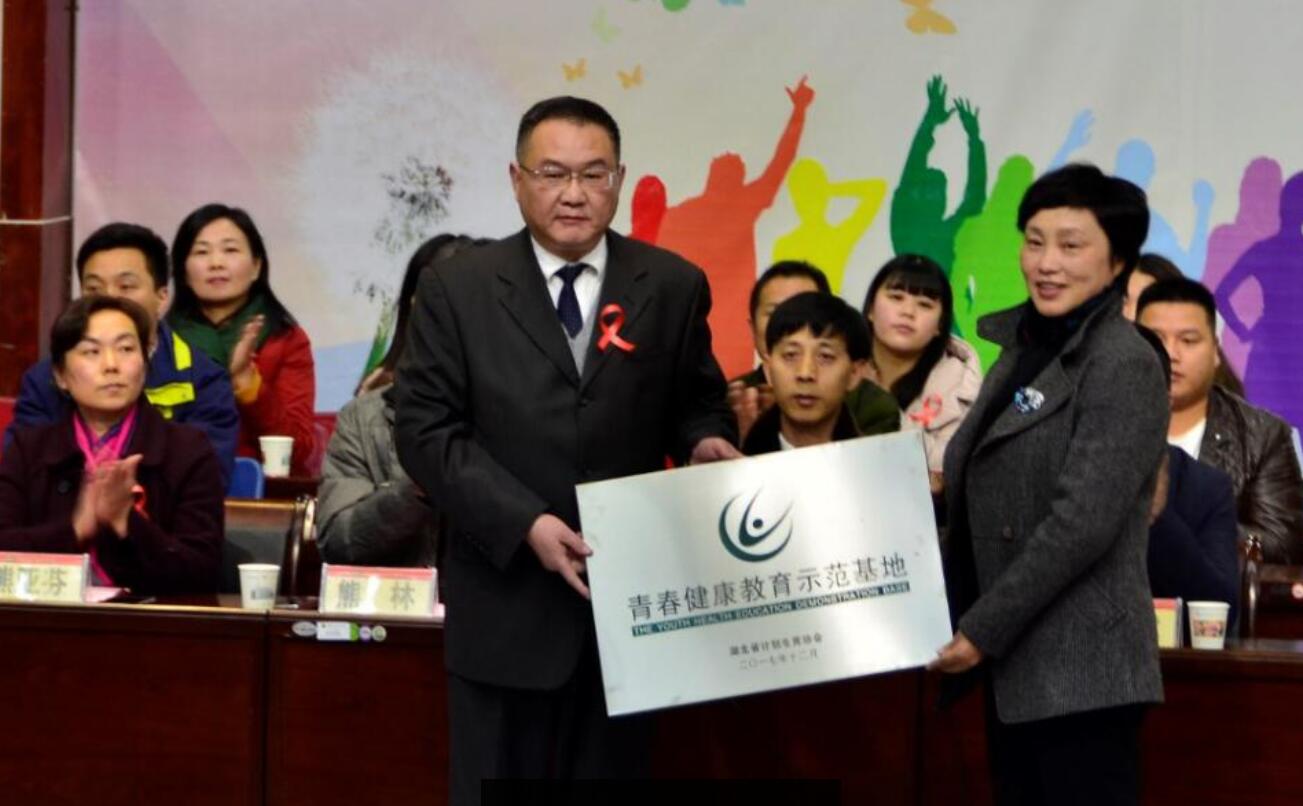 梅红代表湖北省计生协会为Beat365中文官方网站“青春健康教育示范基地”授牌,姜安心接牌