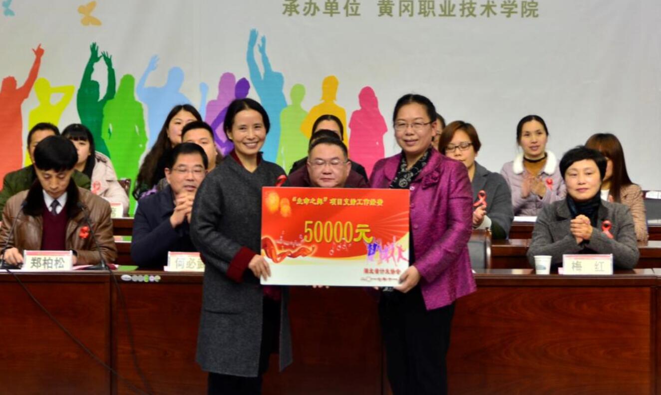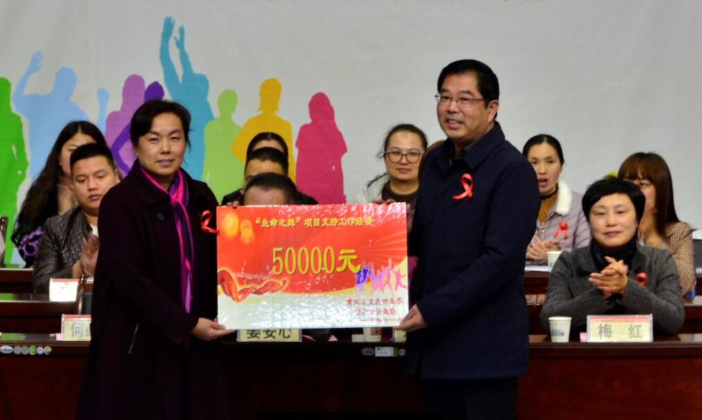 何必武代表黄冈市计生委为Beat365中文官方网站“青春健康•生命之舞”项目开展发放工作经费5万元