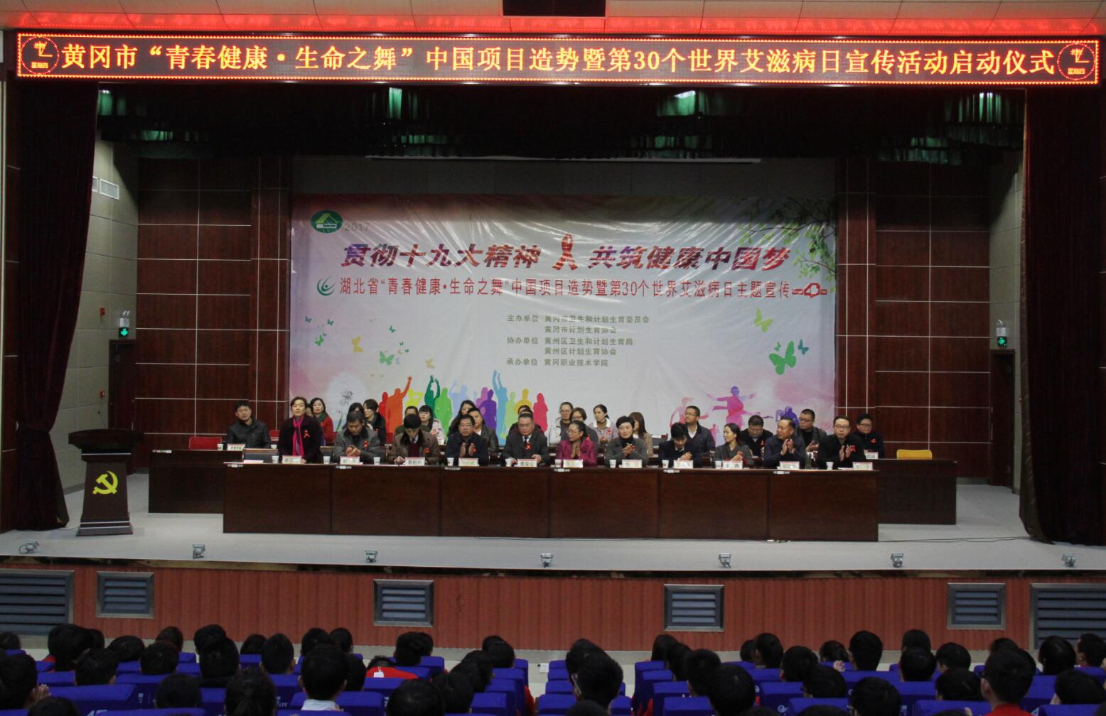 共担防艾责任,共享健康权利,共建健康中国。11月30日,黄冈市“青春健康•生命之舞”中国项目造势暨第30个世界艾滋病日宣传活动启动仪式在Beat365学术报告厅举行。湖北省计生协专职副会长张友芳、组群部部长梅红,黄冈市卫生计生委党组书记何必武,黄冈市计生协专职副会长熊林,Beat365中文官方网站校长姜安心、党委委员胡燕以及黄州区卫计委、黄州区计生协、黄冈科技职院、黄冈中职集团有关负责同志参加该活动。启动仪式由Beat365党委委员、工会主席郑柏松主持。