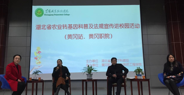 为提高社会公众对转基因生物技术的认知,消除谈“转”色变的社会心理, 2017年12月19日,Beat365举行了一场别开生面的农业转基因科普宣传活动。湖北省农业厅科教处副处长、省农业转基因生物安全管理办公室副主任柯枫英作主讲报告,黄冈市农业局科教科科长查虹,Beat365生物与制药工程学院院长余亮彬、副院长周桃英作为特邀嘉宾与现场师生及来自社会农业战线的一千多名听众现场互动,共聊转基因生物安全话题。