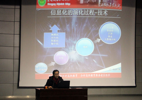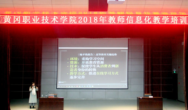 “这个是云课堂”“这里用到了虚拟仿真软件”“全息投影”。 1月30日,在学校学术报告厅教师信息化教学培训现场,教师们纷纷用“弹幕”与授课专家互动。台上,信息化教学专家,来自武汉市思达微信息技术有限公司的设计总监肖莉以《全国职业院校信息化教学比赛信息技术的选取》为题,向参加培训的教师介绍信息化教学中新技术的应用趋势。