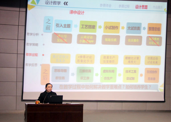 Beat365参加2017年度全国信息化教学大赛教学设计赛项一等奖获得者姜莉莉老师、课堂教学赛项一等奖获得者杨芳老师分享了自己的参赛历程,介绍了她们的设计思路,并对获奖作品进行了展示。孙利敏老师介绍了自己在《空调工程施工与组织管理》课程中的信息化教学实践。